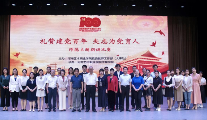 为了迎接建党一百周年的到来,以高质量的师德水平向建党百年献礼,2021年5月21日下午,由校党委教师工作部(人事处)主办、传媒学院承办的“礼赞建党百年,矢志为党育人”诗歌朗诵比赛在小剧场举行。党委书记李陶然、校长周宝全、副书记郑书刚、副校长李悦军、副校长梁周勇、纪委书记薛雁明等领导来到比赛现场指导和观看,20余名参赛教师及350余名师生参加活动。